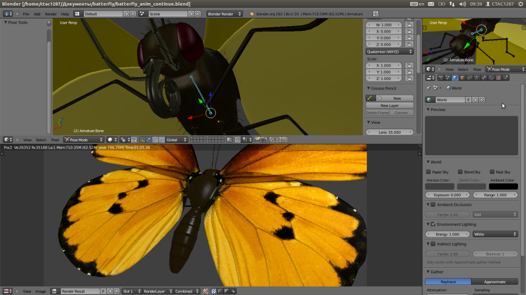Butterfly with texture and bones. High detail and proportion saved :)